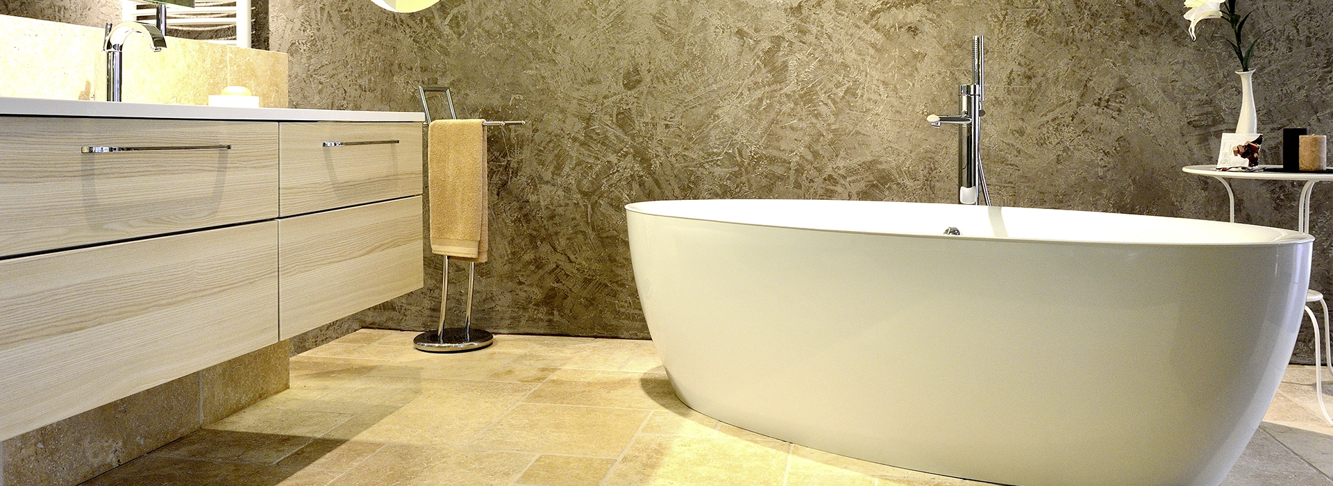 Wir bringen den neuesten Trend der fugenlosen Wandgestaltung in Ihr Bad. Der dabei verwendete Marmorputz ist die pflegeleichte Alternative zu Fliesen und bietet eine Vielzahl an individuellen Gestaltungsmöglichkeiten. Außerdem verhindert der atmungsaktive Baustoff, dass sich Kalk und Schimmel bilden.